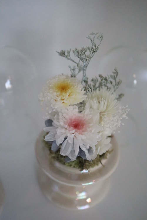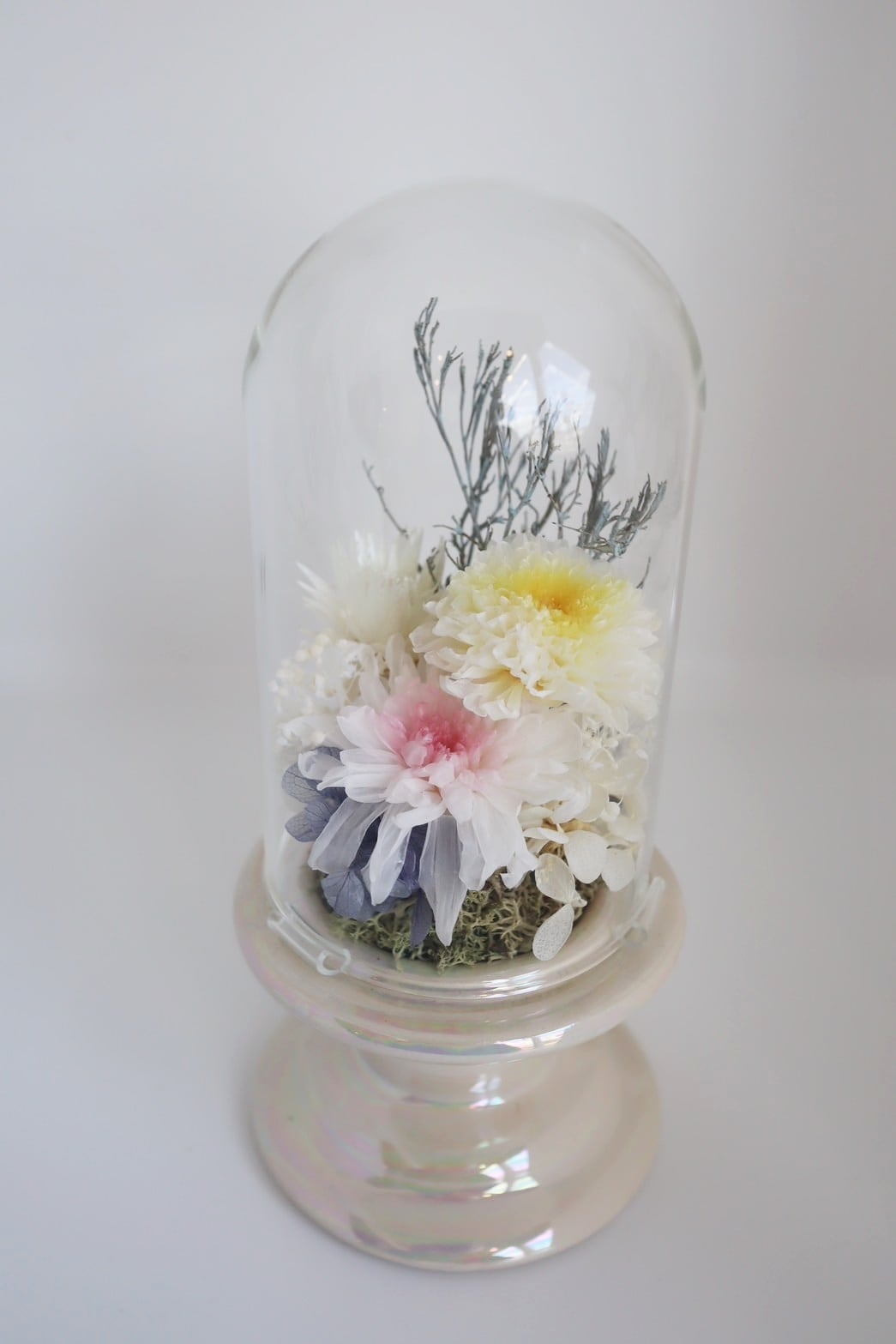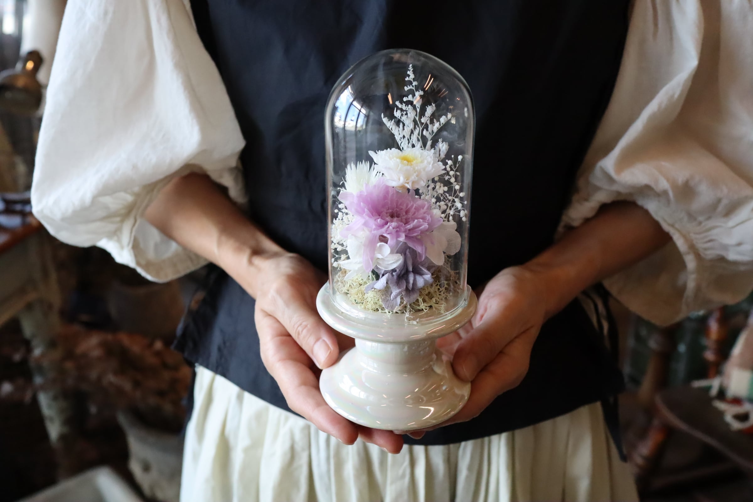 大切な思いを形にし、心を伝える仏花【toujours】。詳細やご不明点については、ショップのお問い合わせからお尋ねください。あなたの特別な瞬間に、心から寄り添う商品です。ガラスドームに入ったデザインのお供え用(仏花)です。