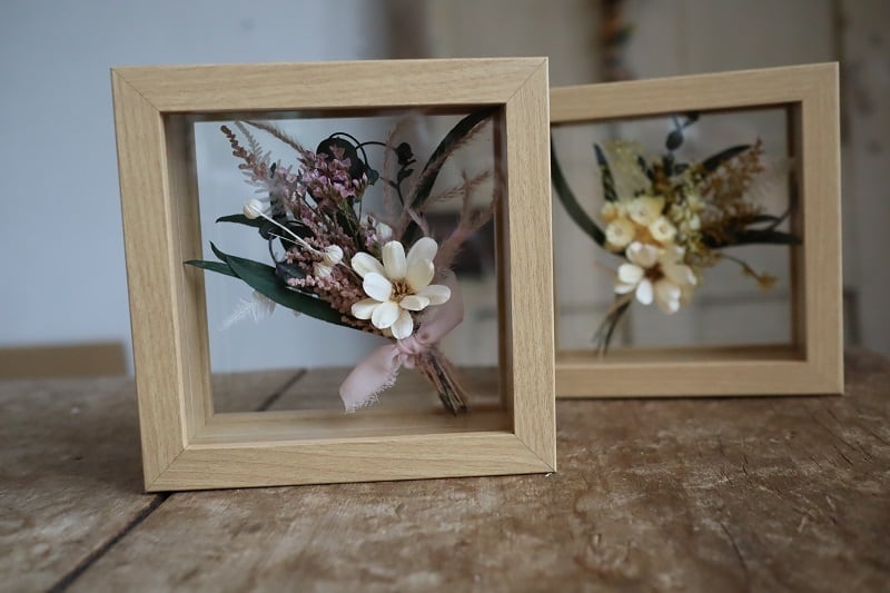 花束は自然の素材を活かし、独特の風合いを持っています。そのため、どんな場所にも調和し、おしゃれな空間を演出することができます。